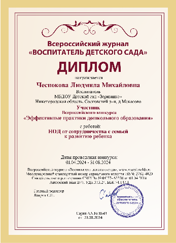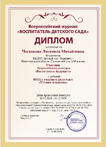Диплом участника в Всероссийском конкурсе "Воспитатель будущего"